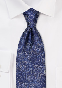 Ein verspieltes Paisley-Muster in Tönen von silbergrau und blassblau auf einem Untergrund in marineblau gibt dieser sorgfältigst verarbeiteten Seidenkrawatte eine besondere Note. Die Krawatte ist zu jedem Outfit ein absolutes Must-Have. Eine hochwertige Krawatte die aus besten siebenfach gezwirnten Garnen (5-fach verzwirnte Seidengarne) gewebt wurde. Die Stoffe wurden von Hand zugeschnitten und vernäht. Dabei sind Stoff und Einlage jeweils im Winkel von 45 Grad geschnitten, so dass die Krawatte eine bessere Elastizität erhält und einen glatten Fall bekommt, damit sie sich nicht verdreht. Nicht nur durch erstklassiges Design, sondern auch durch edle Materialien und hohe Qualität zeichnen sich die Krawatten der traditionsreichen Marke Cavalieri aus. Die Einlage aus einem aufgerauhten Material sorgt dafür, dass die Krawatte einen weichen Griff erhält, sich gut binden lässt und die Krawatte nach dem Tragen leicht wieder in die ursprünglichen Form zurück kommt. Bekennen Sie Farbe und Stilbewusstsein mit dieser Krawatte. Diese Krawatte misst 148cm x 8cm.